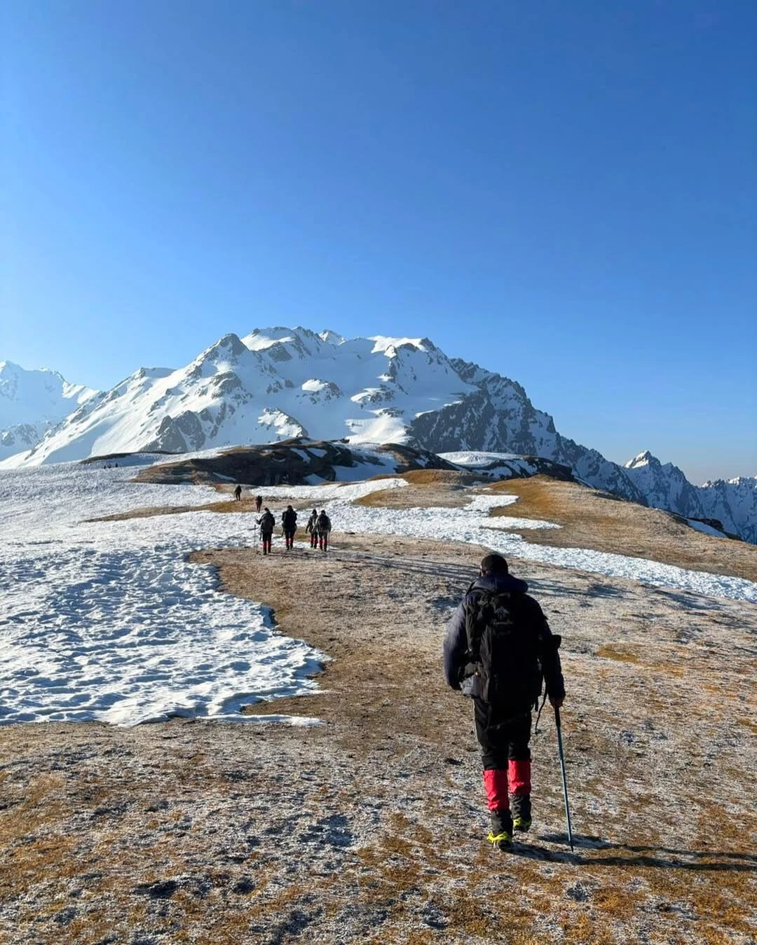 After a few walks, you will find another descent in the valley, and according to the snow situation, you can prefer sliding for longer than one km till reaching ground level.